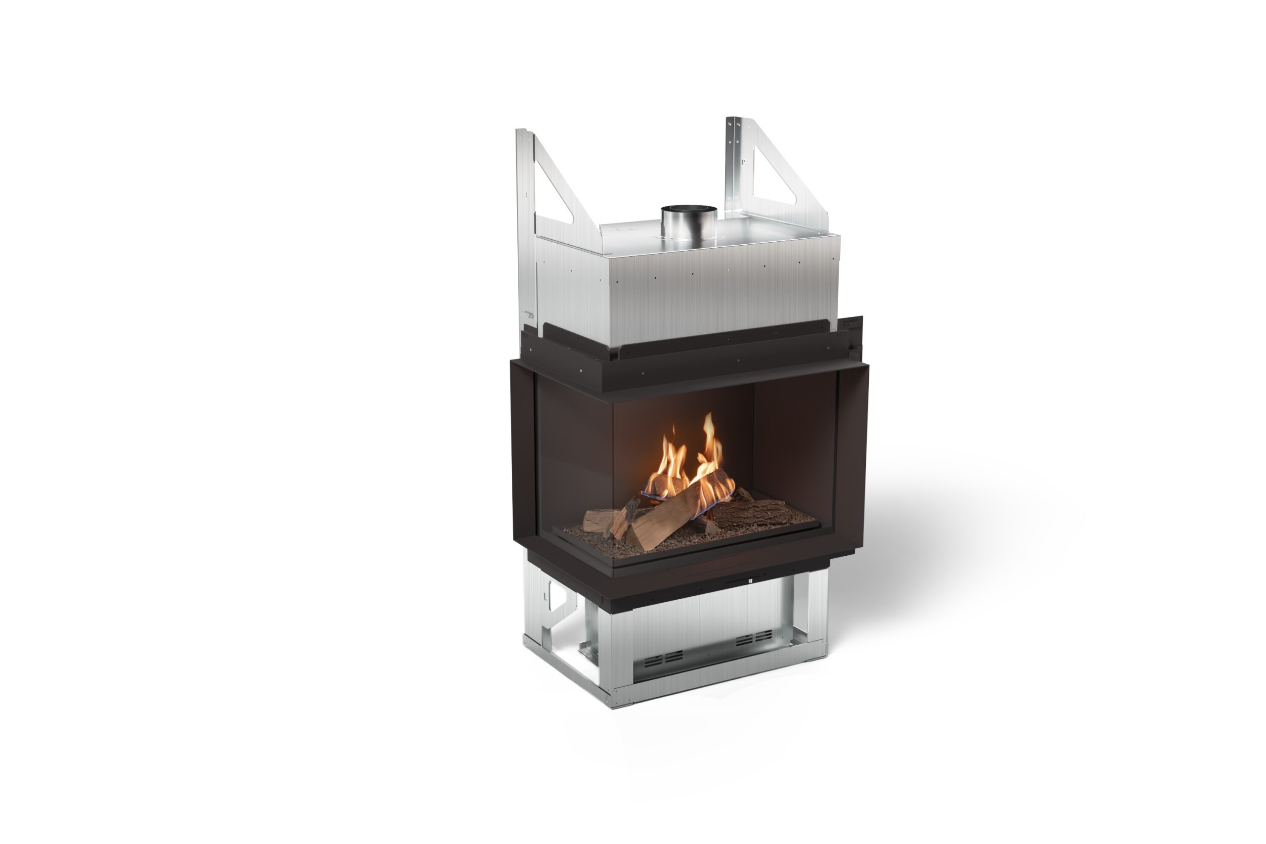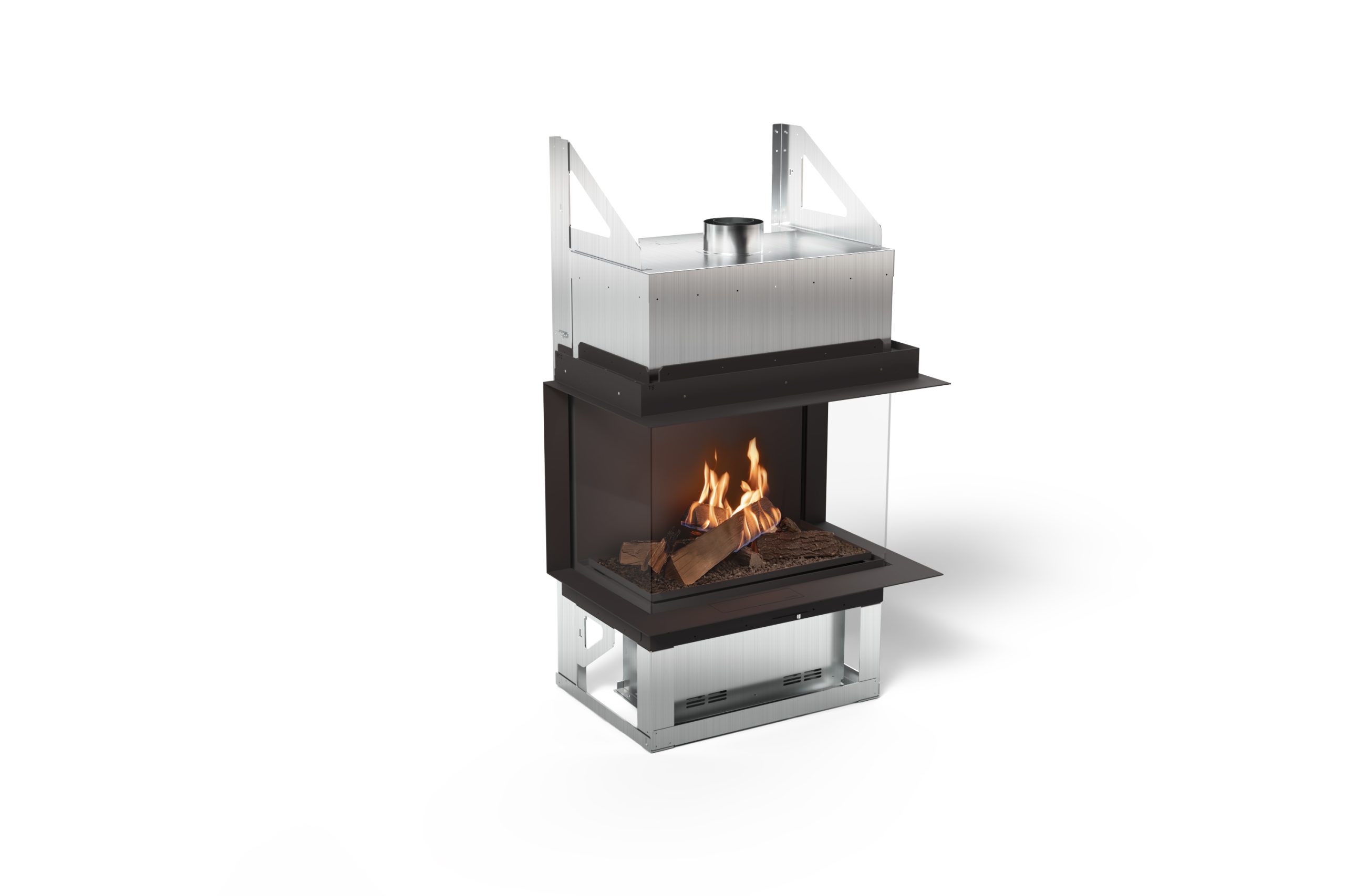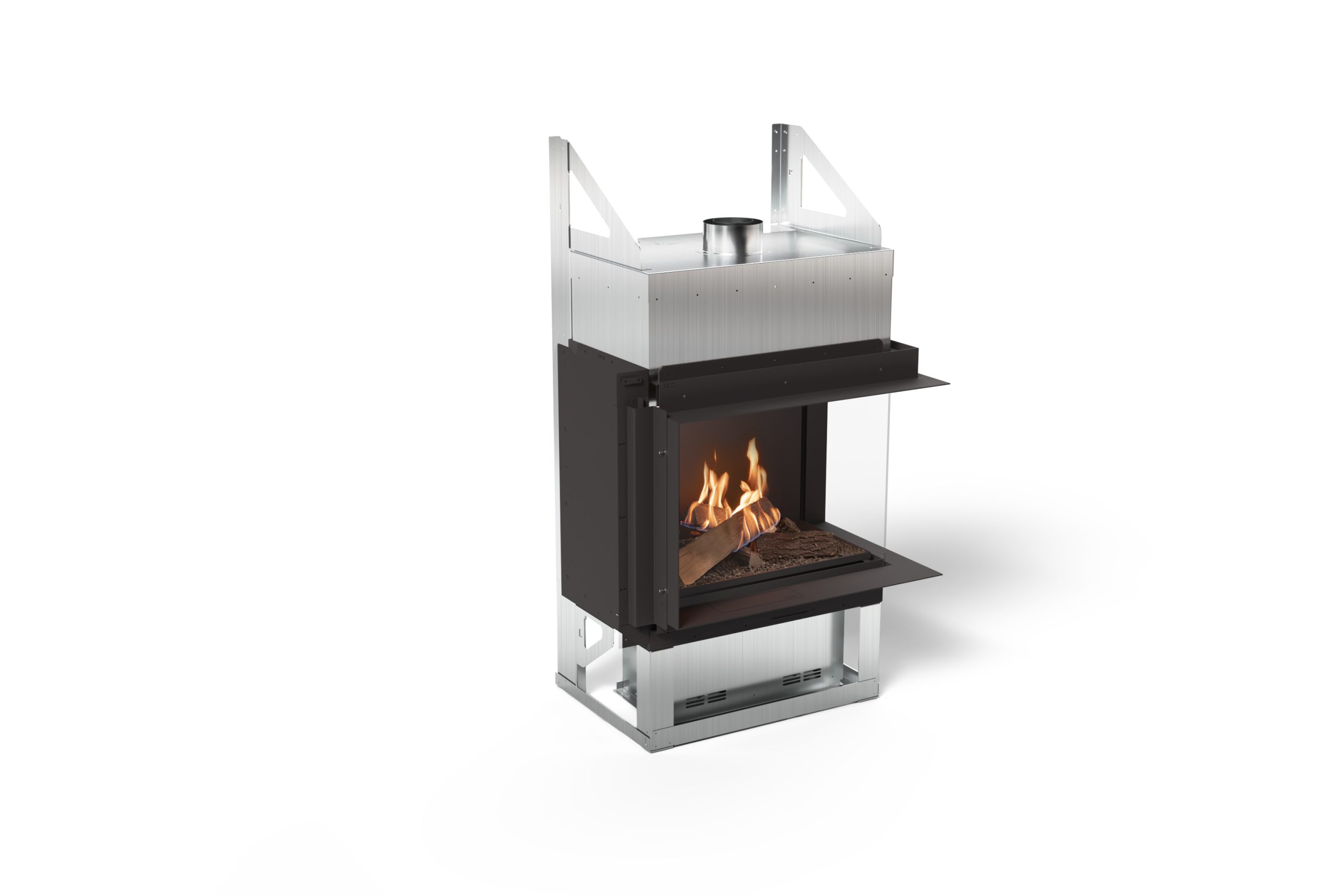 Fuego visible desde cada ángulo, sin elementos estructurales innecesarios